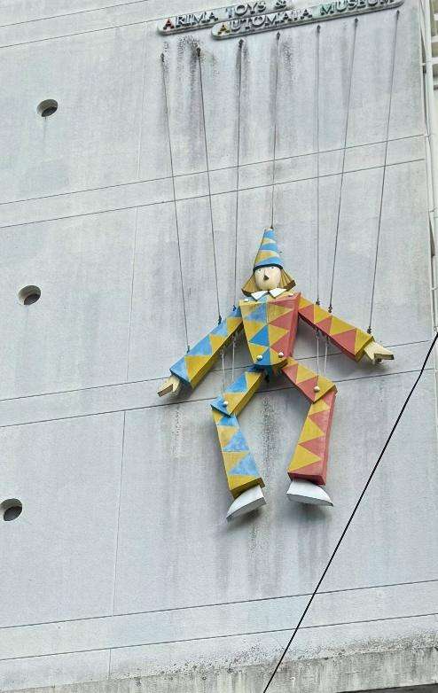 Back in Kobe we found some interesting street art. While Japan is a very tidy country, and graffiti is not popular, we did find some unique street art, including this wall hanging puppet.