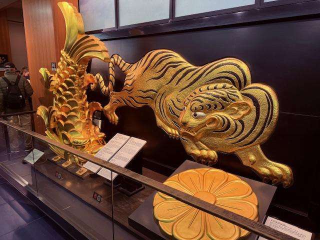 In the museum there are many original artifacts that were part of the original castle. Here is a picture of the three objects we found most impressive. The fish on the left was actually part of the roof, and the object on the lower right is like a logo or “coat of arms” for the Shogun’s family. The tiger is just awesome.